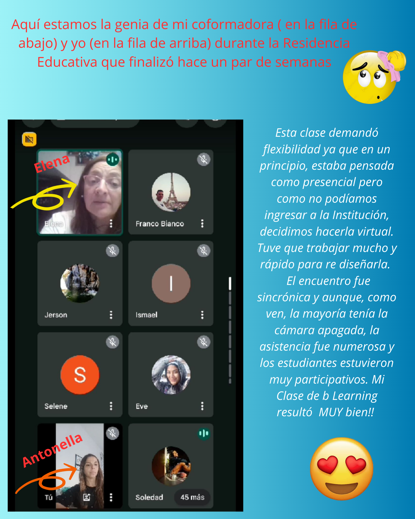 Con mis compañeros, a lo largo de este año, hemos hecho un increíble recorrido. Ahora, ya en la etapa final, podría decir que pertenezco al equipo de los apasionados por la educación virtual y las nuevas tecnologías.